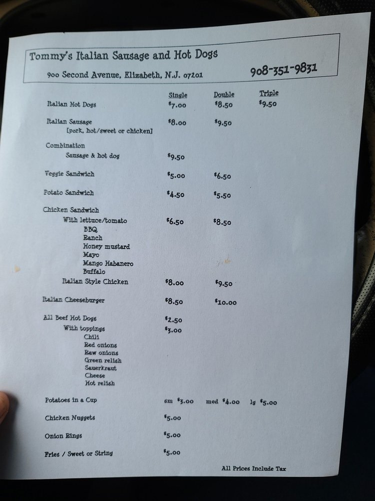 Tommy's Italian Sausage & Hot Dogs in Elizabeth, NJ, is a beloved hotspot known for its iconic Newark-style Italian hot dogs and flavorful Italian sausages. Since 1969, this establishment has been a staple in the culinary world, offering a wide variety of hot dogs that have satisfied customers for over 50 years. The menu includes classic favorites like the chili hot dog and sausage/dog combo, all served with perfectly prepared potatoes and a touch of sweetness from their ketchup. Customers rave about the quality of the food and the friendly service, making it a must-visit destination for hot dog enthusiasts. With options for takeout, delivery, and catering, Tommy's Italian Sausage & Hot Dogs is a go-to spot for a delicious and satisfying meal.